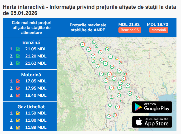 22,04 lei/l Benzină urcă la 22,04 lei/l și motorină la 18,77 lei/l în 7-9 ianuarie de Crăciun pe stil vechi 19,74 lei/€ Leul se întărește ușor față de euro care coboară la 19,74 lei azi conform BNM; dolarul la 16,90 lei 3.400 mld lei Statul recunoaște datoriile față de fermieri; protest cu tractoare la Negureni împotriva guvernării 32 Locatari inclusiv minori evacuați dintr-un bloc cu 16 etaje din capitală după incendiul din noapte