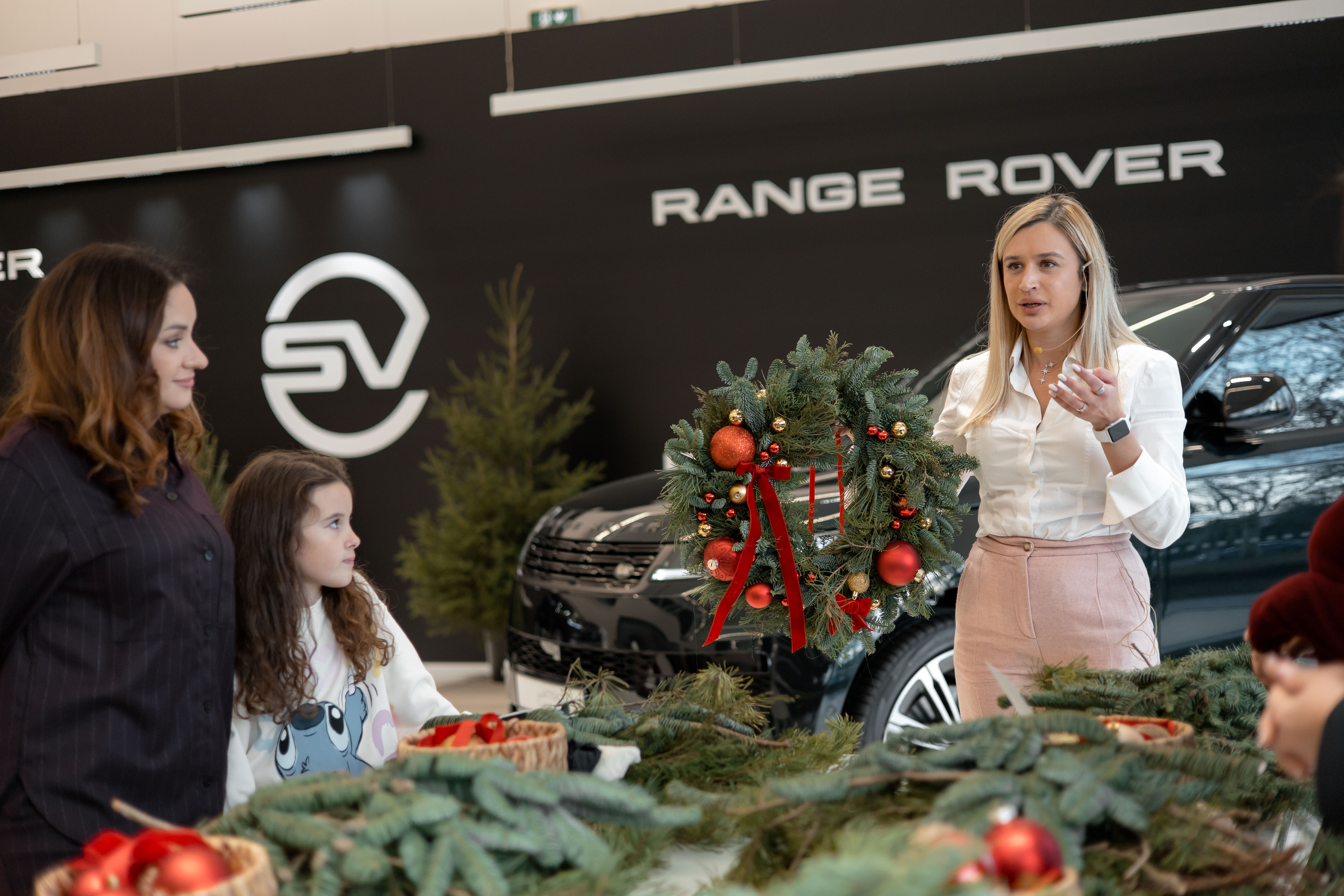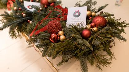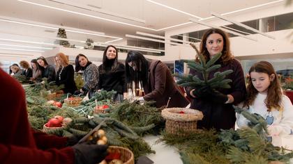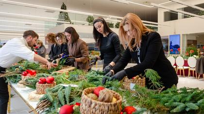 O atmosferă festivă de Crăciun a fost creată de studioul XOstudio FLOWERS, care a organizat un master class pentru oaspeți - realizarea coroanelor festive din ramuri de brad și decorațiuni, pe care ulterior oaspeții le-au putut lua cu ei și decora casele lor