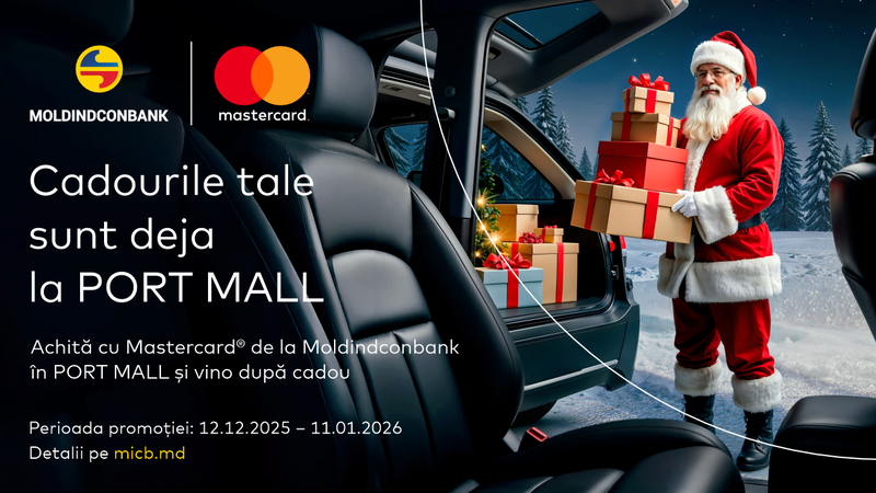 În perioada 12 decembrie 2025 – 11 ianuarie 2026, cei care vizitează Port Mall pot descoperi un colț special Moldindconbank, unde un simplu gest — deschiderea unui card Mastercard — este întâmpinat cu un „bun venit” de 100 lei direct pe card. Standul se află în atriumul central și îi așteaptă pe vizitatori în zilele de vineri, sâmbătă și duminică, exact când mall-ul e plin de nerăbdare festivă.