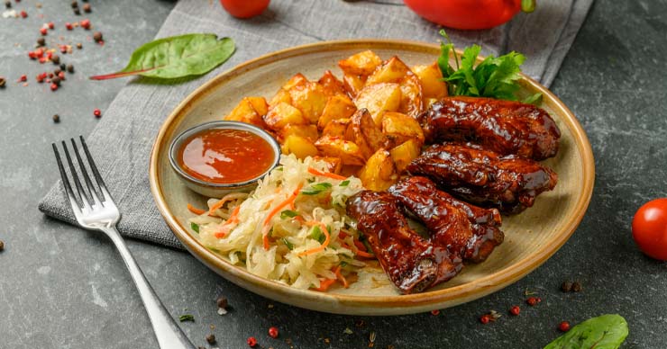 Cina la Andys devine și mai gustoasă cu Costițele de porc glazurate cu cartofi copți și varză murată – Costițele de porc sunt gătite încet pentru o textură fragedă și un gust intens, glazurate apoi pentru o notă dulce-picantă. Însoțite de cartofi copți și varză murată, acest preparat este perfect pentru serile răcoroase.