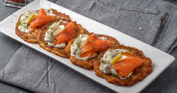 Un clasic reinterpretat, acest preparat combină perfect dranikul crocant din cartofi cu delicatețea somonului slab sărat, totul completat de un sos de smântână cremos. Un start ideal pentru un festin de toamnă!