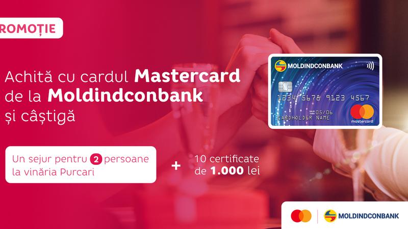 În perioada 11 - 14 februarie 2021, faceți plăți cu cardul Mastercard de la Moldindconbank în magazine din țară sau peste hotare, inclusiv online, în sumă de cel puțin 200 de lei și aveți ocazia să câștigați premiul mare – un sejur pentru două persoane la vinăria Purcari. Acesta include o excursie, o degustare de vin, un meniu pentru 2 persoane la restaurant, o noapte la hotel.