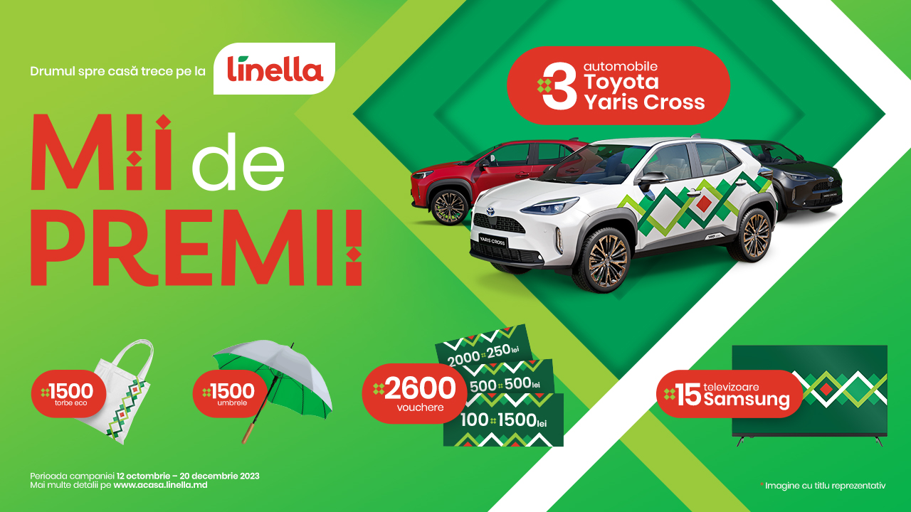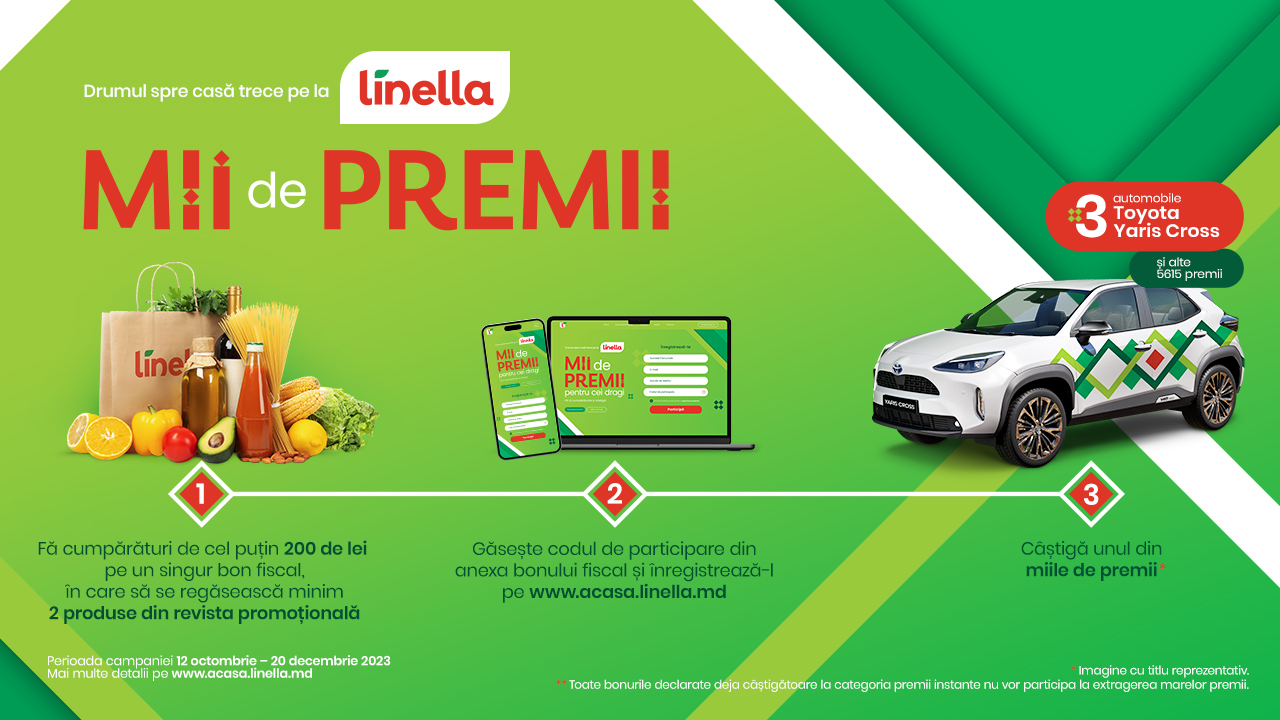 Compania anunță că orice client Linella care își face cumpărăturile în această perioadă de cel puțin 200 de lei pe un singur bon fiscal, în care să se regăsească minim 2 produse din revista promoțională și/sau flyer săptămânal, se poate înregistra în tombola Linella.