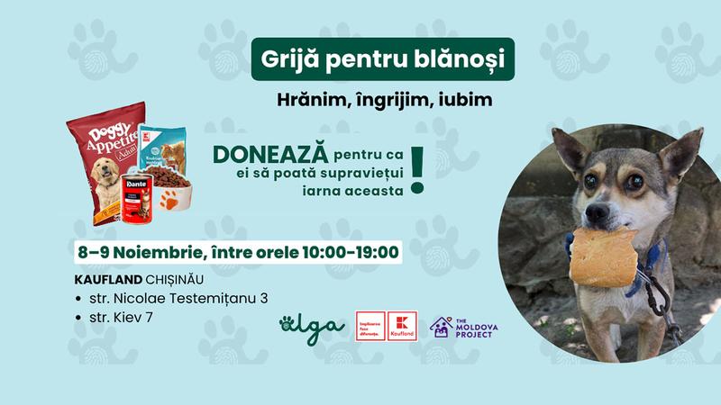 Prin „Grijă pentru blănoși. Hrănim, îngrijim, iubim”, organizația Alga, Kaufland Moldova și The Moldova Project își propun să ofere sprijin concret acolo unde este cea mai mare nevoie - pentru blănoșii care depind de noi.