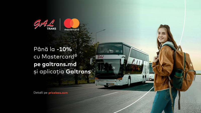 Promoția este valabilă pentru biletele cumpărate pe www.galtrans.md sau prin aplicația mobilă GAL Trans achitate cu un card Mastercard. Reducerea se aplică automat la plată, fără coduri promoționale sau pași suplimentari.