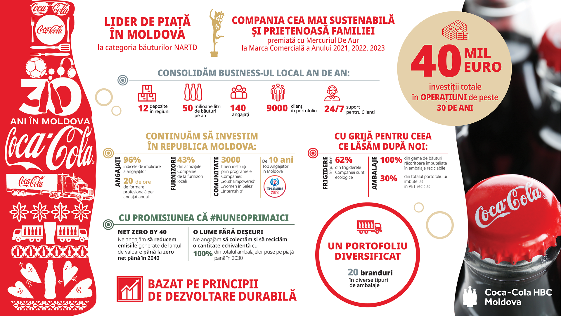 În cei 30 de ani de activitate în Republica Moldova, Coca-Cola HBC Moldova a câștigat încrederea datorită optimismului și angajamentului pe termen lung față de piața locală, a stabilit parteneriate solide care au condus la succesul economic și social, acționând cu grijă față de mediu și bunăstarea comunității.