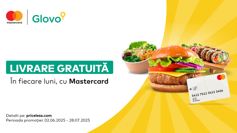 Astfel, în iunie și iulie 2025, utilizatorii Mastercard beneficiază de prima livrare gratuită în fiecare luni, pentru comenzile plasate prin aplicația Glovo.