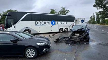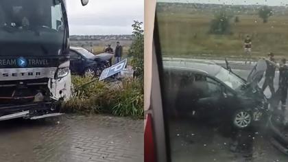 (video) Accident grav lângă vama Leușeni: Două mașini și un autocar, avariate