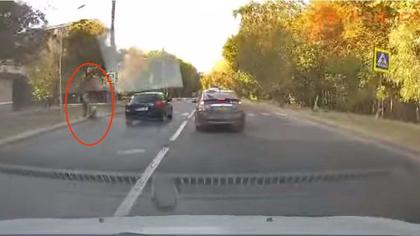 (video) O mamă cu un copil în cărucior, la un pas să fie spulberată pe zebră de o mașină