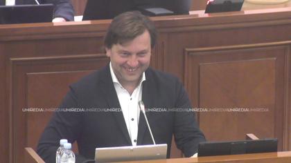 (stop cadru) Alaiba, abia ieșit la tribuna Parlamentului: Rog susținerea proiectului. Grosu: Nici chiar așa. Un pic mai desfășurat