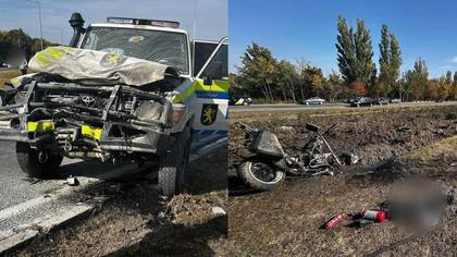 (foto) Un motociclist și pasagerul său au decedat, după ce s-au lovit cu mașina INSP, lângă Aeroport: IGP a dispus anchetă de serviciu