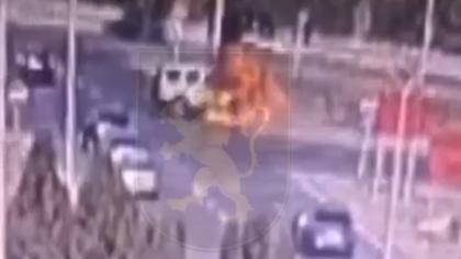 (video) Accident grav lângă Aeroport: O motocicletă, cuprinsă de flăcări, după ce s-a lovit frontal cu o maşină de poliţie