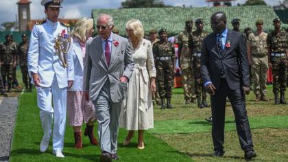(video) Momentul în care Regele Charles se împiedică pe iarbă, într-un cimitir din Kenya: Reacţia monarhului