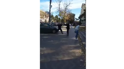 (video) Scandal cu gaze lacrimogene și strigăte în centrul capitalei: Un activist s-a luat l-a bătaie cu două fete și un bărbat, care a parcat pe trotuar