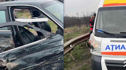 Accident grav la Sîngerei: O minoră, transportată la spital, după ce un BMW a ieșit pe contrasens și a intrat violent într-o ambulanță