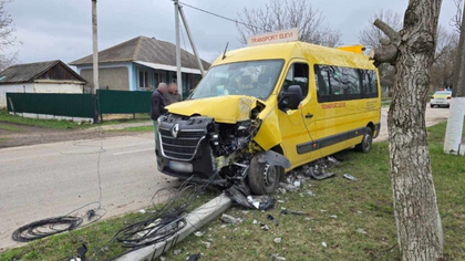 (foto) O fetiță de 9 ani, rănită în accidentul cu implicarea autobuzului școlar, la Ocnița: Șoferul a pierdut controlul volanului și s-a izbit de un pilon