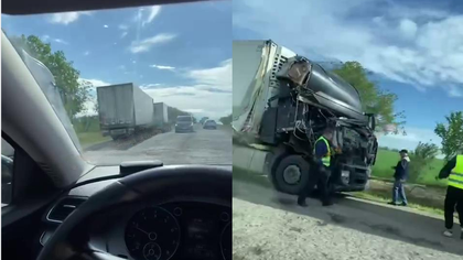 (video) Un șofer de TIR a adormit la volan și a lovit în plin un alt camion: Impact violent în apropiere de Rîșcani, în toiul nopții