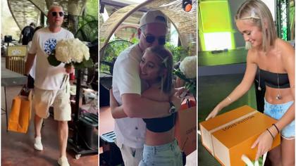 (video) „Eu am cel mai klasnîi naș!” Iuliana Beregoi, surprinsă de Renato Usatîi cu un buchet de hortensii și un cadou de la Louis Vuitton, de ziua sa