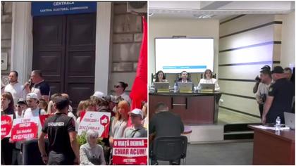 (video) Scandal cu protest pe fundal, la CEC. Liderul „Șansă”, Alexei Lungu, dat afară cu Poliția: Rușine, executați orbește indicațiile lui Grosu, Sandu și Recean