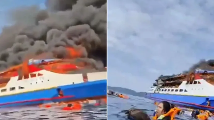 (video) Imagini dramatice pe mare: Feribot cu sute de pasageri, cuprins de un incendiu violent, în Indonezia. Trei oameni au murit
