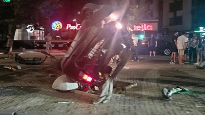(video) Accident nocturn în capitală: O mașină s-a răsturnat după o coliziune puternică, în zona Circului. Ambulanța a intervenit