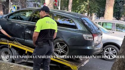 (foto) Un Audi, boțit după un accident în centrul capitalei: Poliția, la fața locului