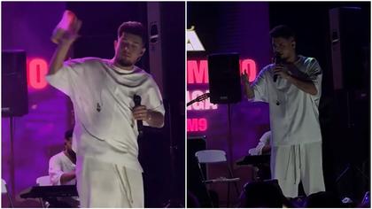 (video) Babasha, incident neplăcut în timpul unui concert. Un spectator a aruncat o sticlă direct în artist: „Cine a făcut asta? Dacă nu spuneți, plec”