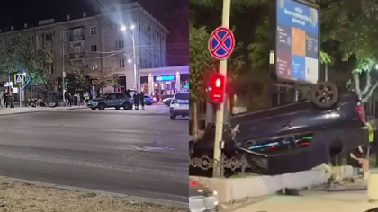 (foto/video) Accident nocturn în capitală. Un Opel s-a răsturnat după o coliziune puternică cu un Range Rover, pe bd. Grigore Vieru. Poliția, la fața locului