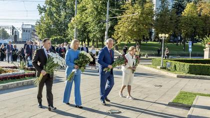 (video) 34 de ani de la Independența Republicii Moldova: Conducerea țării a depus flori la monumentul „Maica Îndurerată” de la Complexul „Eternitate”