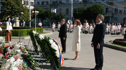 (video) Maia Sandu, însoțită de Dorin Recean și Igor Grosu, cu flori la monumentul lui Ștefan cel Mare și Sfânt, de Ziua Independenței