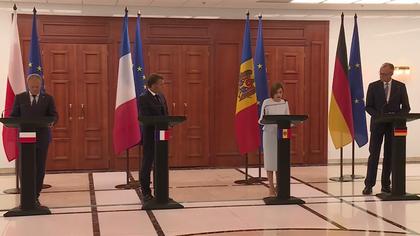 (video) Oaspeți la Președinție de Ziua Independenței: Emmanuel Macron, Friedrich Merz și Donald Tusk, întâmpinați de Maia Sandu