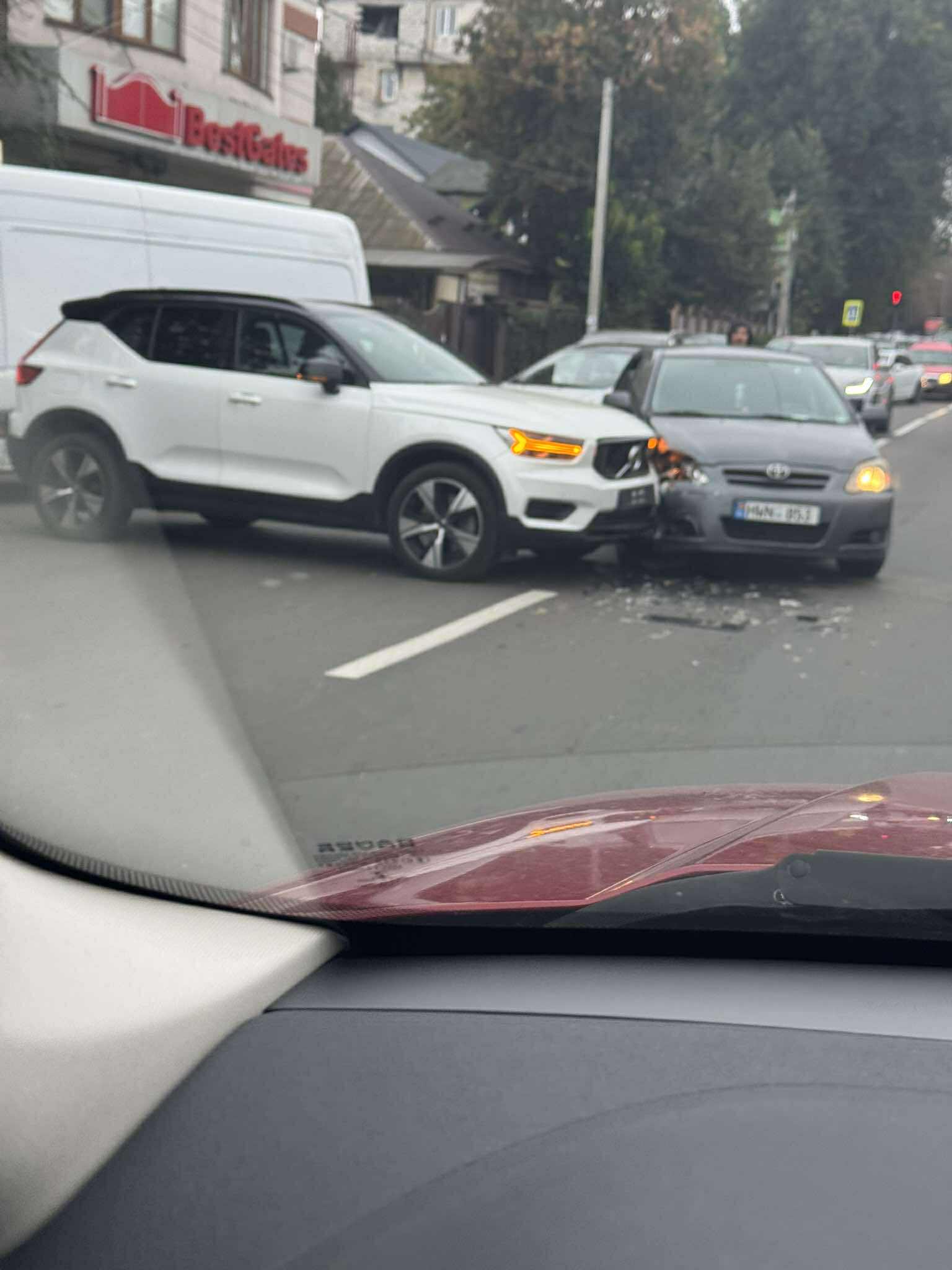 Astfel, conform unei fotografii trimise la adresa redacției UNIMEDIA, automobilul de model Volvo a fost lovit de o Toyota, impactul având loc chiar în mijlocul intersecției.