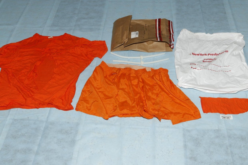 Thomas l-a descris pe Epstein ca fiind fără cămașă când l-a găsit. Probele indică faptul că o cămașă care se crede că a fost tăiată de pe corpul lui Epstein a fost returnată ulterior de la spital într-o pungă cu obiecte personale.