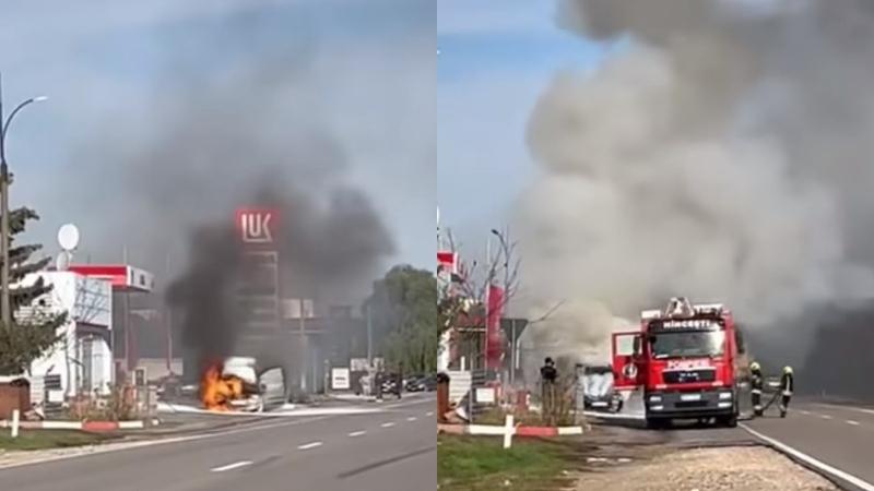 Un automobil a luat foc la o stație PECO din Hîncești. Imaginile video de la fața locului au fost publicate pe rețele de internauți. Cazul ar fi avut loc astăzi, 5 noiembrie.