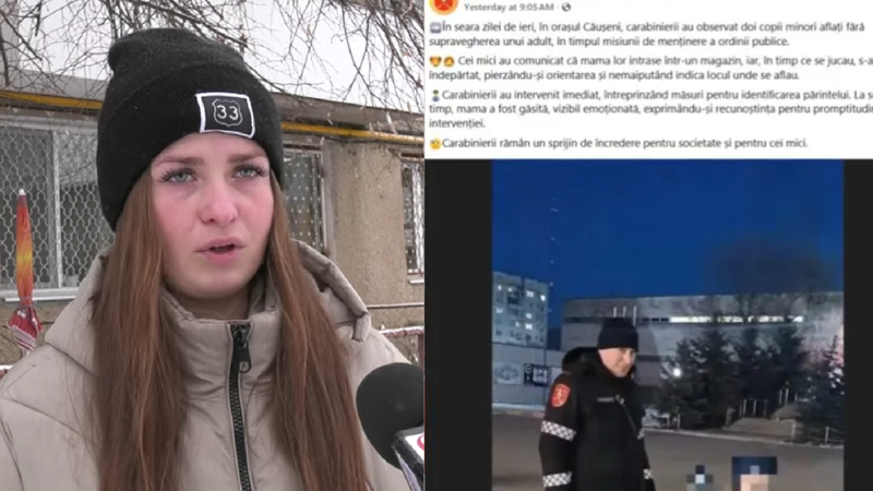 Conform postării, minorii ar fi rămas singuri pe stradă după ce mama ar fi intrat într-un magazin. Femeia susține însă că era alături de copii și deține imagini video care demonstrează că, în timpul unei plimbări de la grădiniță spre casă, s-au întâlnit cu carabinierii, iar angajatul MAI le-ar fi cerut permisiunea pentru o fotografie.