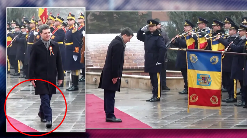 Afectat de huiduieli, șeful statului a mers pe lângă covorul roșu la ceremonia oficială, apoi s-a prins în Hora Unirii.