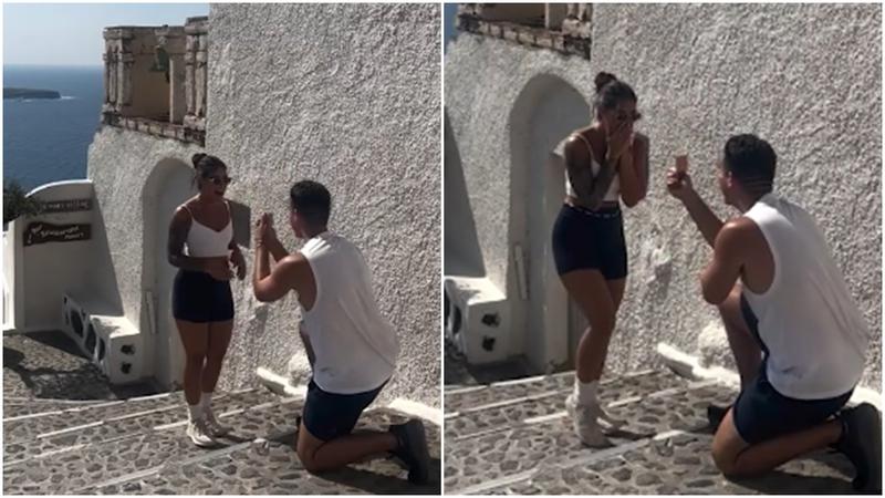 Totul s-a întâmplat pe o străduță pitorească din Santorini, Grecia, acolo unde Natali Melani și Kevin Arrieta, fondatorii Yoga Plus Miami, organizau un retreat de yoga. Arrieta alesese acel loc pentru a-și surprinde partenera cu o cerere în căsătorie planificată în detaliu: un cadru de vis, trepiedul pregătit și emoția momentului.