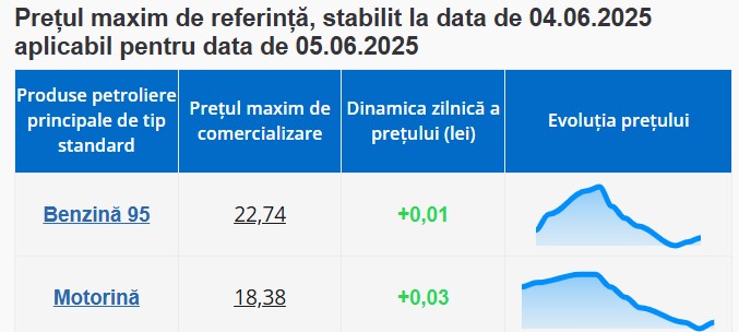 Astfel, litrul de benzină cu cifra octanică 95 va costa 27,74 lei, cu un ban mai scump decât astăzi, iar litrul de motorină - 18,38 lei, cu 3 bănuți mai mult.