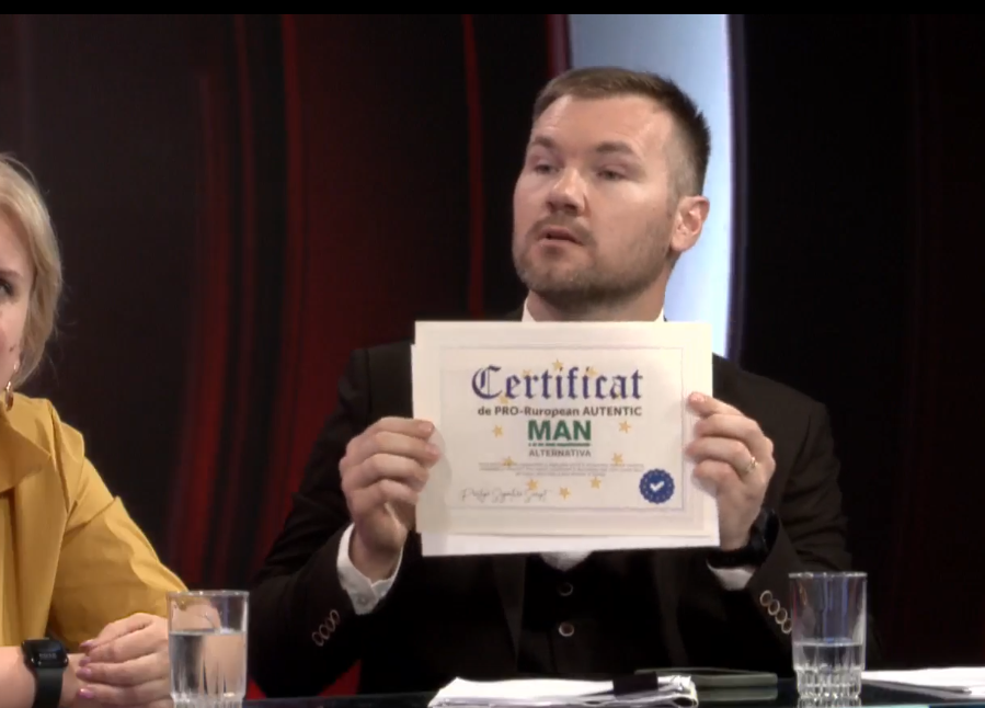 Mesajul de pe certificat s-a dovedit a fi cu greșeală. „Doamna Maia Sandu când ni l-a dat s-a greșit, probabil nu l-a dat din suflet, asta e problema”, a comentat Pruteanu.