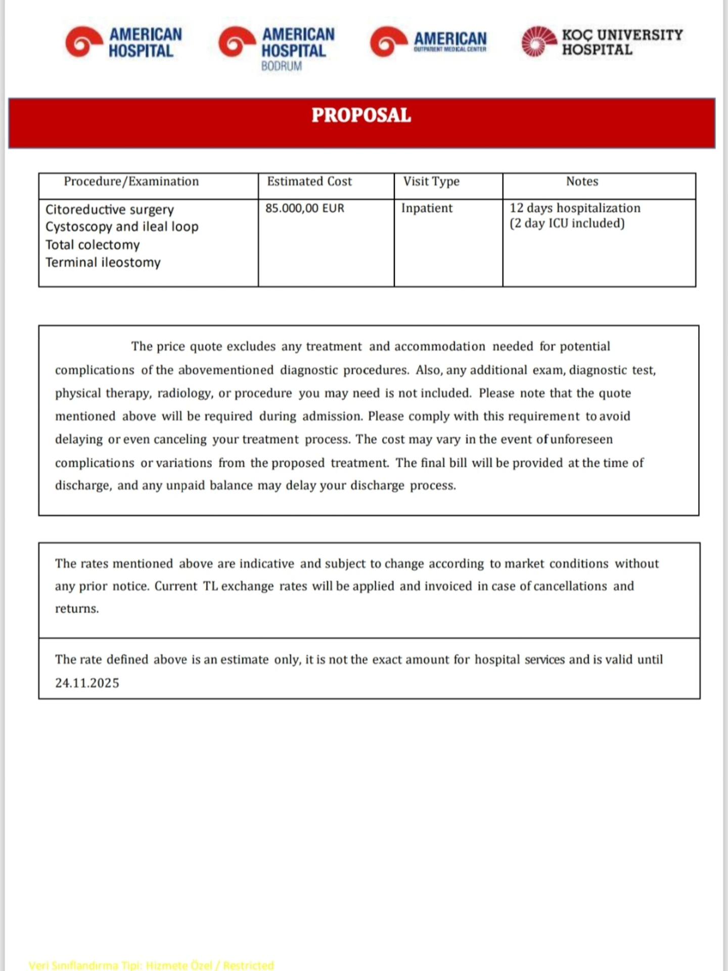 „Din păcate, urmează pasul cel mai greu — operația, care va avea loc peste aproximativ două luni. Costurile sunt mult mai mari decât ne-am așteptat: operația și spitalizarea pentru 12 zile ajung la aproape 85.000 €.