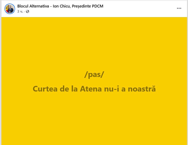 „Curtea de la Atena nu-i a noastră”, a scris Chicu pe rețele.
