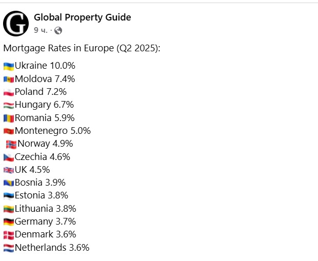 În contrast, țări precum Germania (3,7%), Danemarca și Olanda (3,6%) înregistrează unele dintre cele mai scăzute rate ipotecare din regiune.