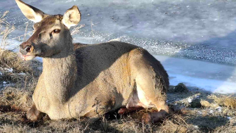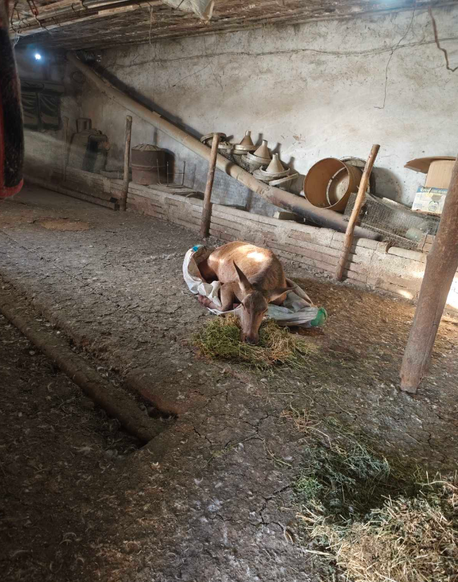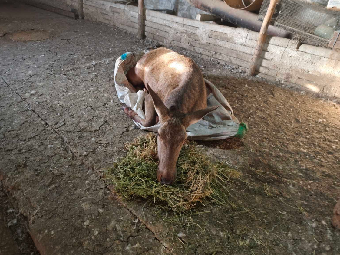 La fața locului, inspectorii au constatat că femela de cerb prezenta traumatisme evidente și au solicitat sprijinul specialiștilor de la Agenția Națională pentru Siguranța Alimentelor (ANSA). Aceștia au administrat o doză de anestezie și au stabilit că piciorul drept din spate era fracturat în proporție de aproximativ 95%, cel mai probabil din cauza unui laț în care animalul fusese prins.