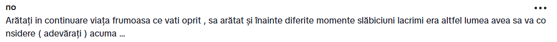 A doua zi, într-o altă postare pe TikTok, influencerița a mărturisit: „Astăzi eu nu arăt cel mai bine, astăzi îmi permit să mai fiu slabă. De fapt, urăsc acest sentiment, pentru că mereu am fost foarte puternică de fire, ca om. Vreau să ies din toată asta cu brio, pentru că mă urăsc pentru sentimentul acesta, asta mă deranjează cel mai tare și vreau ca totul să fie bine.”