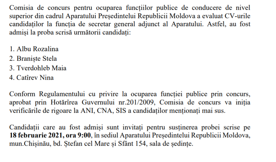 Candidații urmează să susțină proba scrisă pe 18 februarie 2021.
