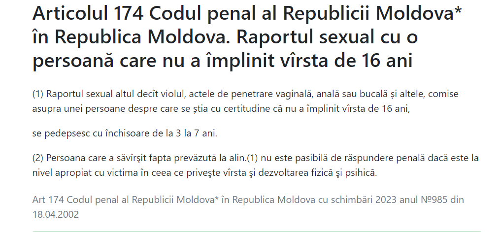 Materialele sunt examinate prin prisma articolului 174 al Codului Penal al RM.