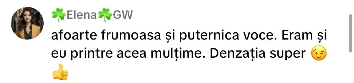 „Foarte frumoasă și puternică voce. Eram și eu printre acea mulțime. Senzația super”, au scris fanii.