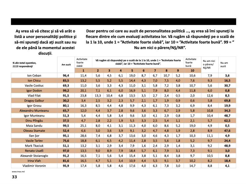 „Iată cum arată lucrurile în evoluție: O stagnare pentru Maia Sandu. Vedem un trend descendent pentru Renato Usatîi, o relativă stabilitate pentru Igor Dodon și o ușoară revenire pentru Ion Ceban”, a mai adăugat directorul IMAS.