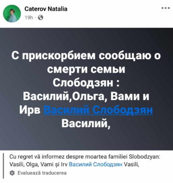 „Anunțăm cu durere despre decesul familiei Slobozean”, se arată într-o postare.
