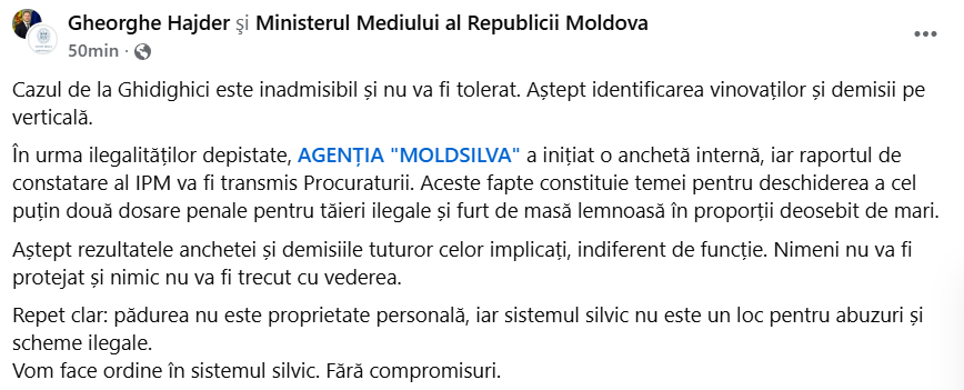 Vom face ordine în sistemul silvic. Fără compromisuri”, a scris Hajder pe rețele.